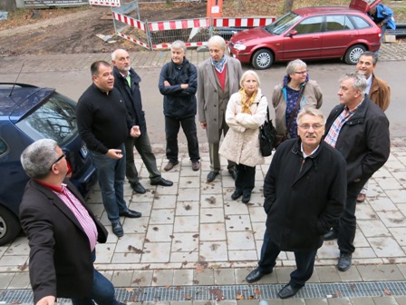 Der OV-Vorsitzende Ernst Trebin begrüßte die Gäste, unter ihnen nicht nur die Distrikt-Stadträte Thomas Fischer, Heinz Kuntke und Peter Süß, sondern auch den Fraktionsvorsitzenden Wolfgang Metzner, am Treffpunkt Eichendorffplatz und übergab das Wort Herrn Wonka, dem Leiter des Immobilien-Managements der Stadt Bamberg, der über die Entwicklung des Projekts referierte. Das Gesamt-Gelände umfasst 33.000 qm, davon sind aber nur 20.000 qm private Fläche, während der Rest auf Freiflächen entfällt, Straßen, Grünland und Spielgrund. Herr Wonka berichtete über die Finanzierungsmodelle, die für Familien erschwingliche Kosten ermöglichen sollten, ferner über die Energiestandards, die zur Voraussetzung gemacht wurden. So handelt es sich bei den Ein- wie Mehrfamilienhäusern um Niedrigenergiehäuser, die nicht mit fossilen Energieträgern beheizt werden, sondern teils mit Erdwärme, teils mit Fernwärme. Die Art des Anschlusses an ein Fernwärmenetz ist noch nicht entschieden und hängt von den Gegebenheiten ab, die die Konversion der benachbarten US-amerikanischen Liegenschaften mit sich bringt. Übergangsweise stehen mobile Blockheizkraftwerke zu Verfügung. Die Bauweise der Häuser ermöglicht, dass die Wohnraumerwärmung weniger Energie verbraucht als die Warmwasserversorgung. Die Brennholzvorräte vor einigen Einfamilienhäusern dienen nur dem Betrieb von kleineren Kaminöfen, aber nicht zur Grundversorgung. Vertreter von Baugesellschaften, die auf dem Gelände Wohnraum errichten und verkaufen, begleiteten den Umgang und stellten ihre Angebote vor. Großes Interesse fanden die sogenannten Pick-up-Häuser, die bei sparsamem Umgang mit dem Baugrund auf raffinierte Weise erstaunlich reichlichen und attraktiven Wohnraum ergeben. Ein langjähriges Mitglied des ehemaligen Sportvereins erinnerte an Max Gardill, der als Funktionär des Sportclubs nachdrücklich für den Aufkauf des Geländes eintrat und so die heutige Entwicklung ermöglichte. Er bedauerte, dass die das Areal erschließende Straße nicht dessen Namen trägt. Am Ende des Rundgangs lief den Besuchern noch eine Horde fröhlicher Kinder über den Weg und demonstrierte somit den Gewinn, den diese Anlage bedeutet. Diese Bauland-Erschließung sowie die nun angelaufenen Baumaßnahmen auf den ehemaligen Betriebsflächen von Glaskontor und Schaeffler werden die angespannte Wohnraumsitution in Bamberg in den kommenden 1 bis 2 Jahren entschärfen helfen.